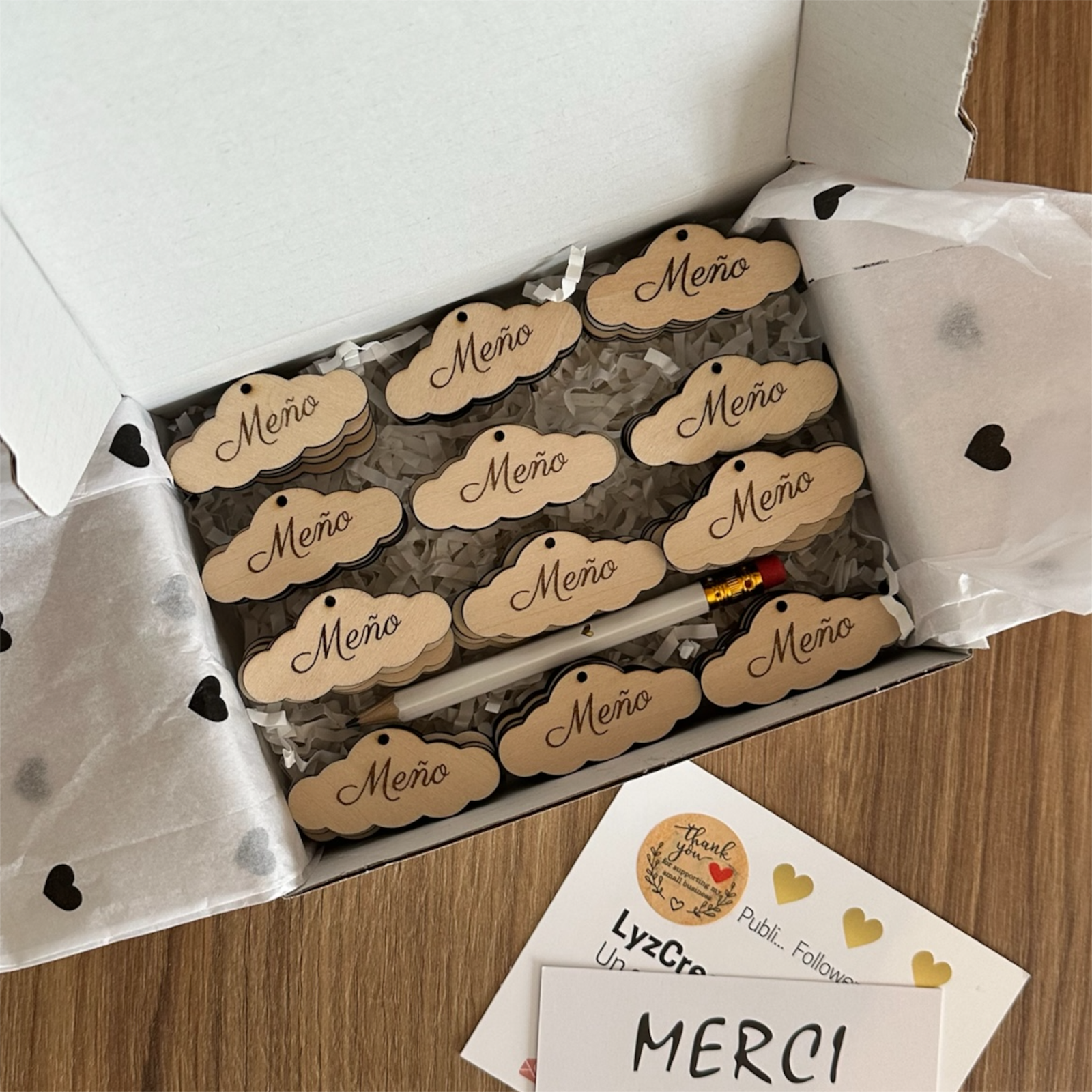 Ajoutez une touche de douceur et de poésie à votre événement avec ces magnifiques étiquettes en bois en forme de nuage, découpées et gravées au laser. Chaque étiquette est personnalisée avec le prénom de l’enfant, la date du baptême et un petit motif animal ou symbole.