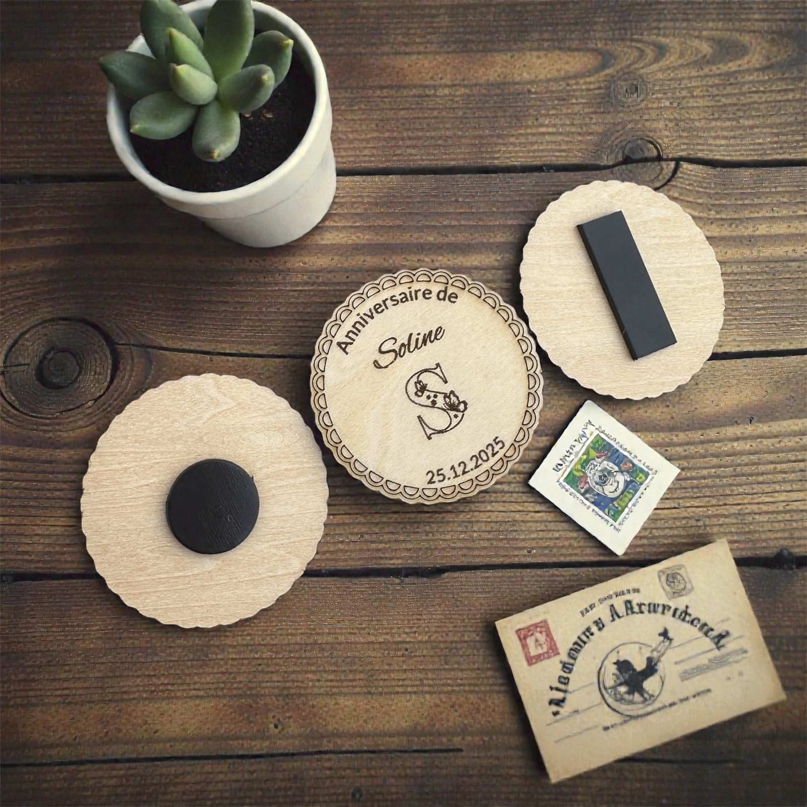 Chaque magnet est personnalisé avec le prénom et la date de votre choix, pour un cadeau à la fois élégant, durable et mémorable.