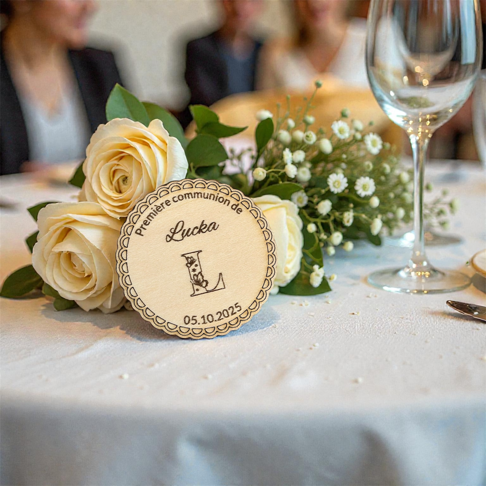 Magnets anniversaire / baptême personnalisés en bois gravés au laser parfaits pour célébrer vos événements spéciaux : baptême, première communion ou anniversaire.