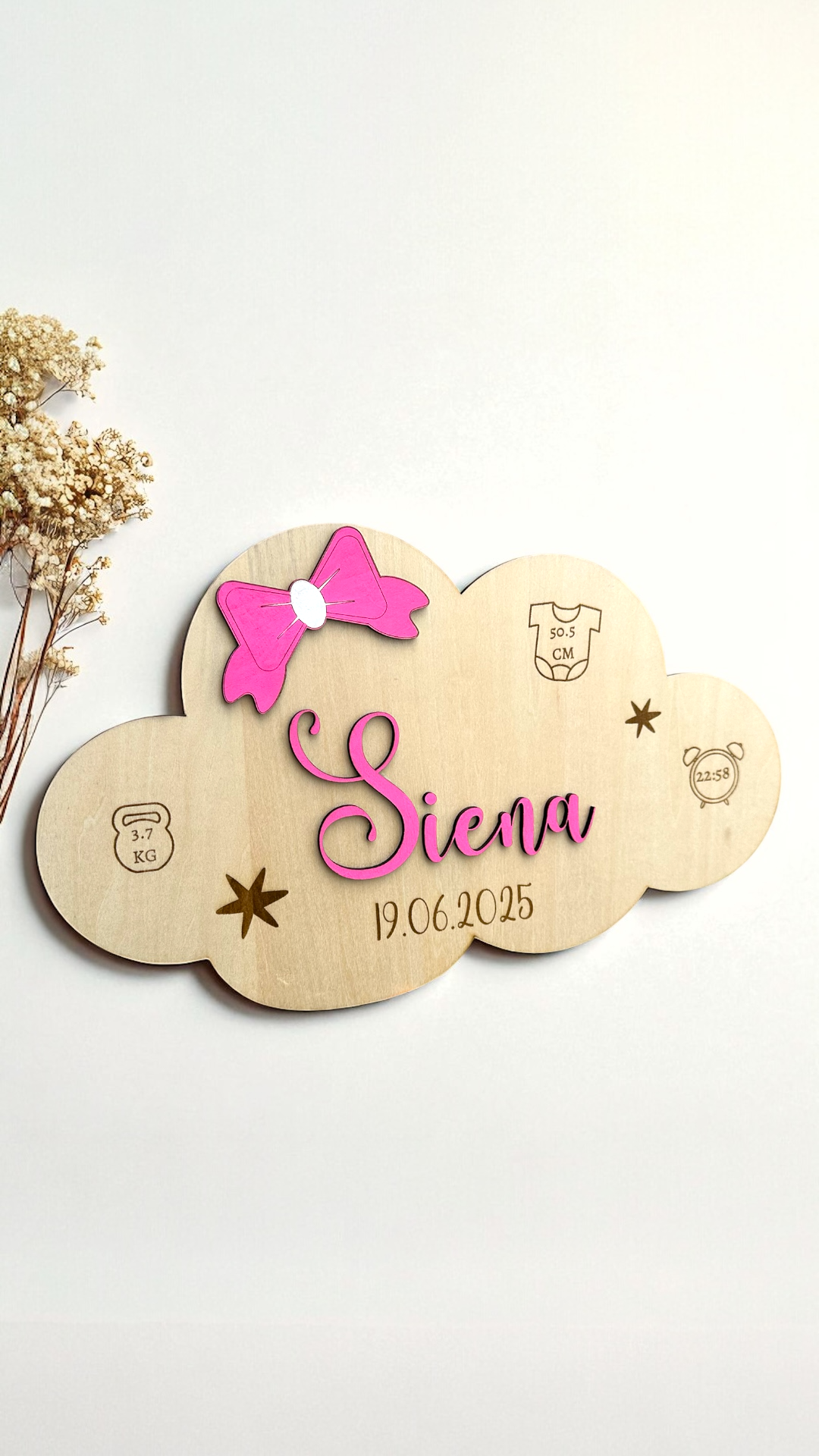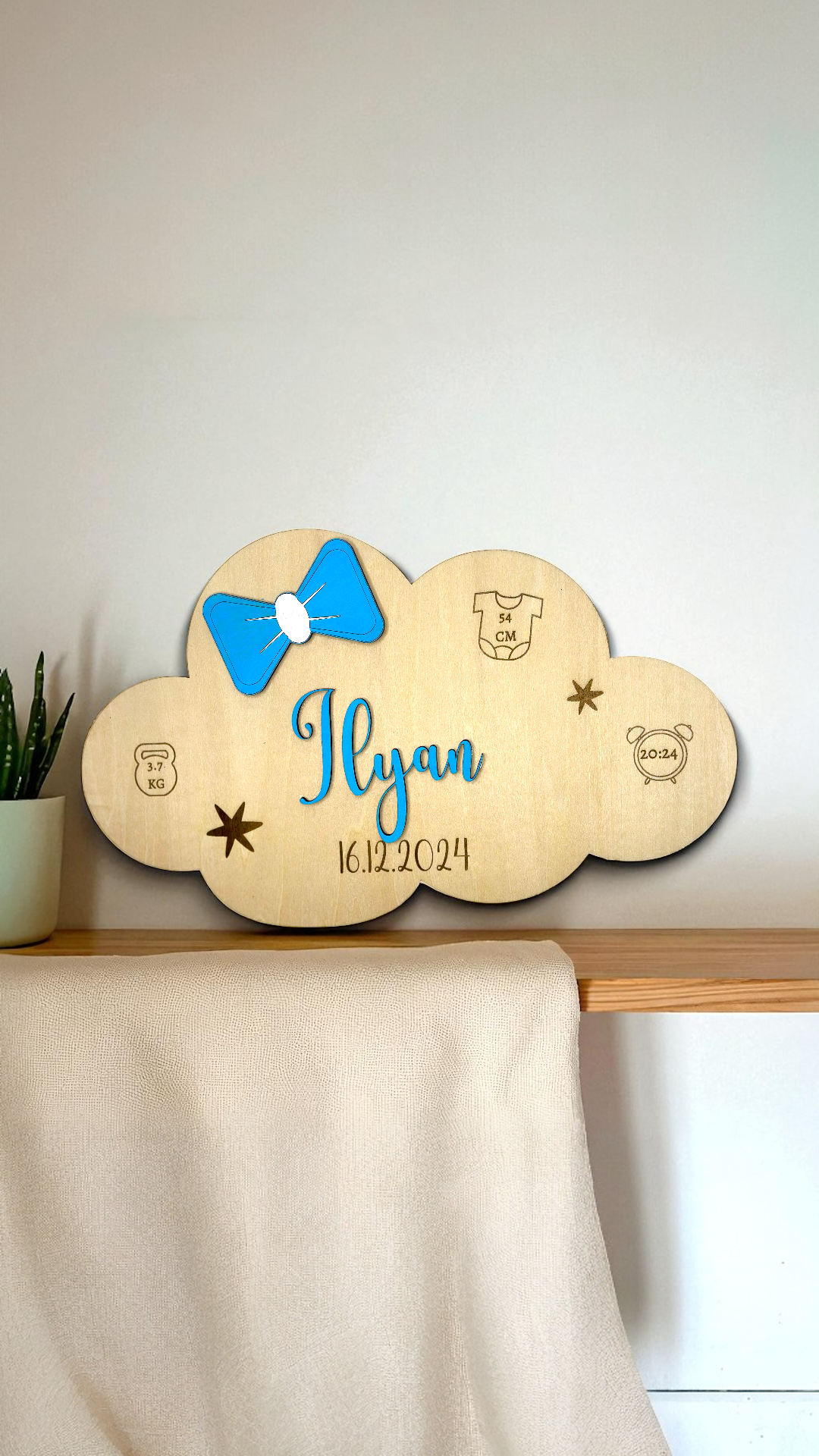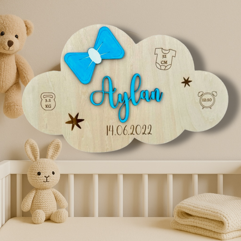 Faites de l’arrivée de bébé un moment inoubliable avec cette adorable plaque de naissance personnalisée en forme de nuage !
