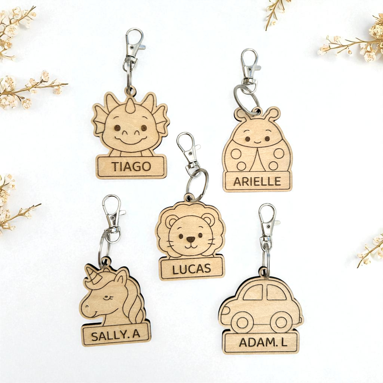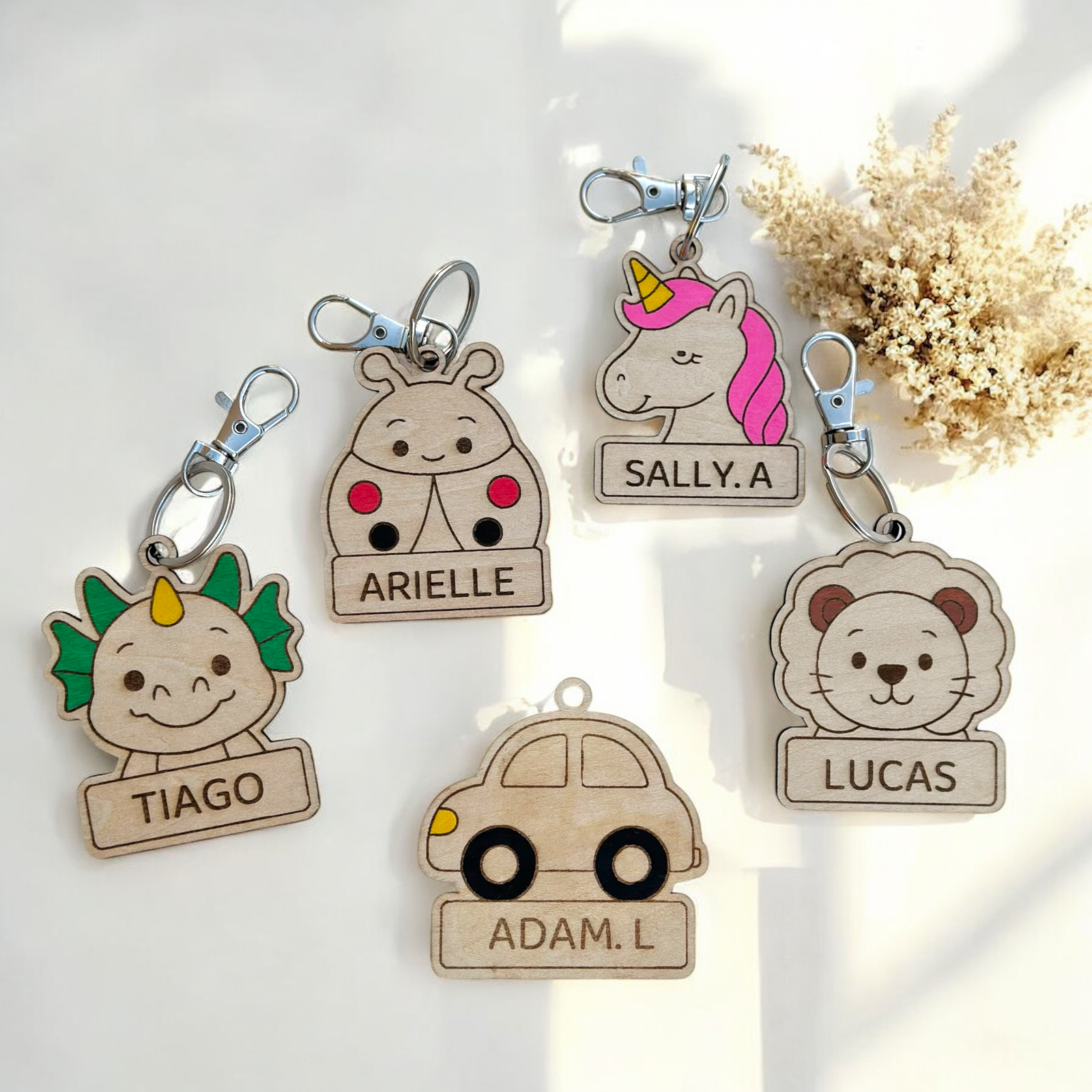 Ajoutez une touche unique et mignonne aux clés ou au cartable de vos enfants avec ces porte-clés personnalisés ! Fabriqués en bois et gravés au laser, ils représentent différents motifs adorables (dinosaures, licorne, voiture, coccinelle, lion…) et peuvent être personnalisés avec le prénom de votre choix.