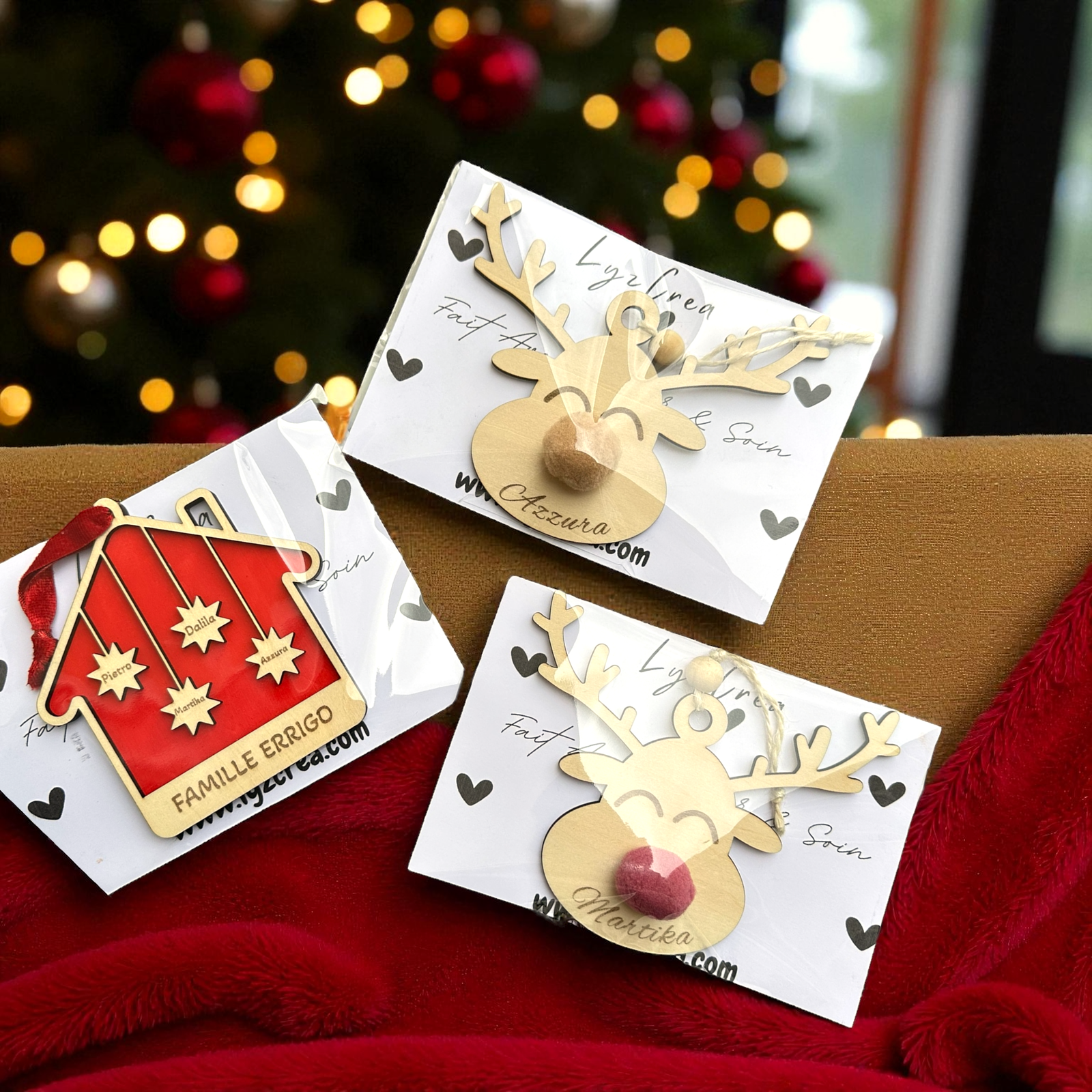 Ce charmant renne en bois personnalisé apportera une touche de douceur et de magie à votre sapin.