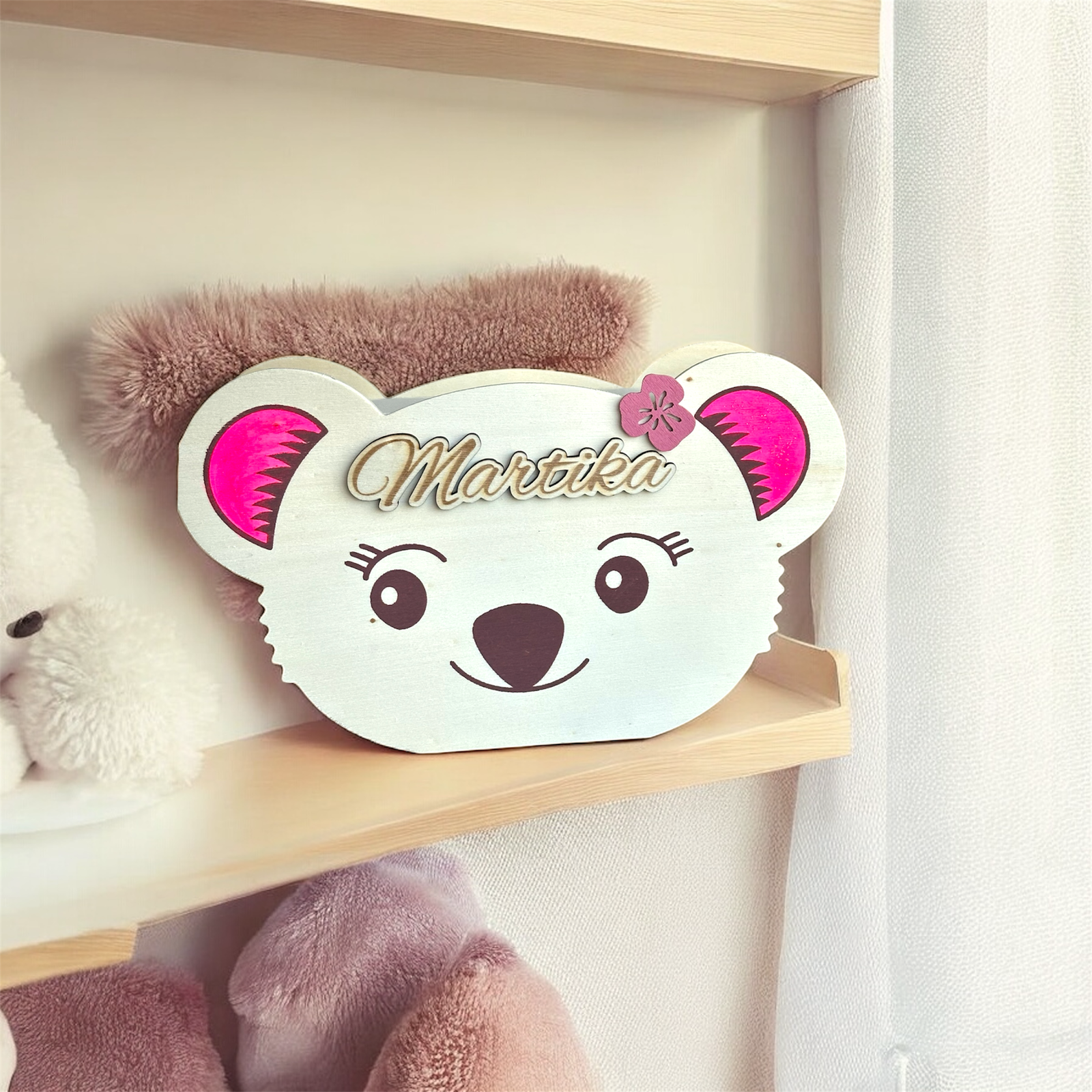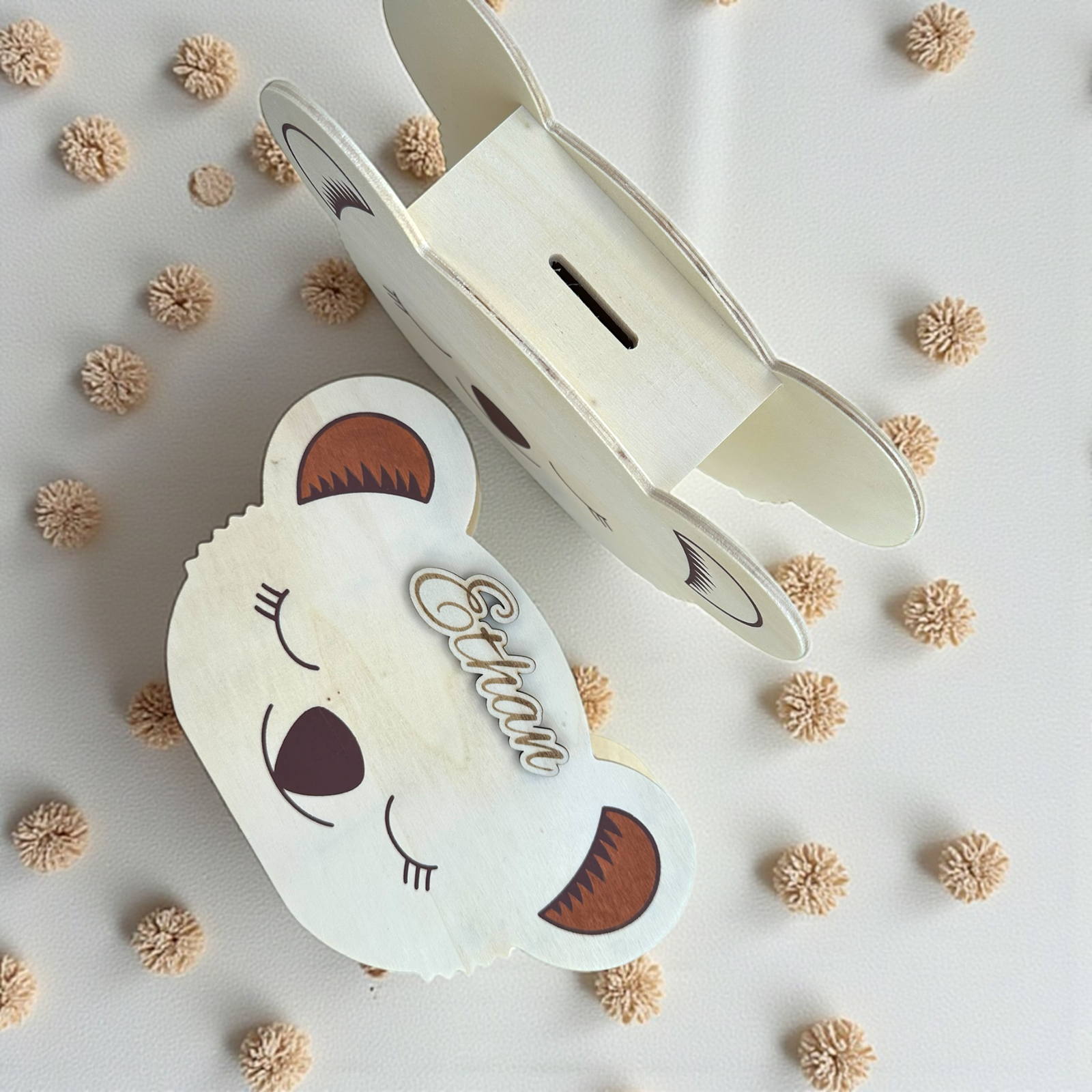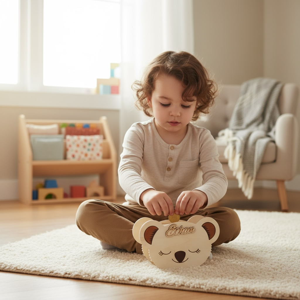 - Offrez une tirelire koala en bois personnalisée, gravée avec amour et conçue pour apporter douceur et caractère à la chambre de votre enfant. Idéale comme cadeau de naissance, pour un anniversaire ou une baby shower, cette tirelire permet aussi d’initier dès le plus jeune l’importance d’économiser. Le prénom gravé la rend unique, et le bois naturel lui donne charme et authenticité.