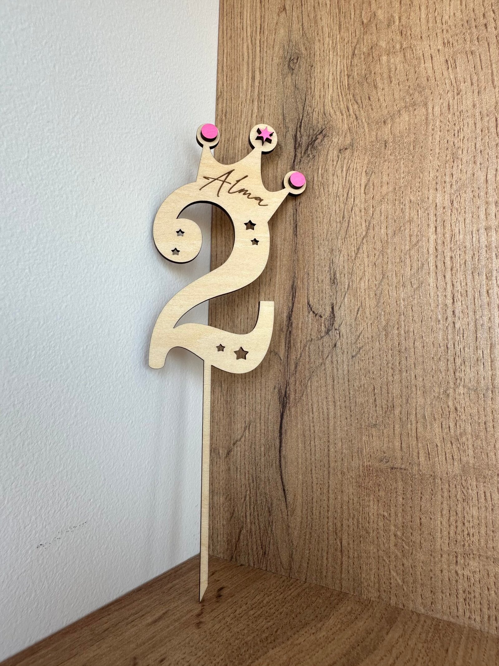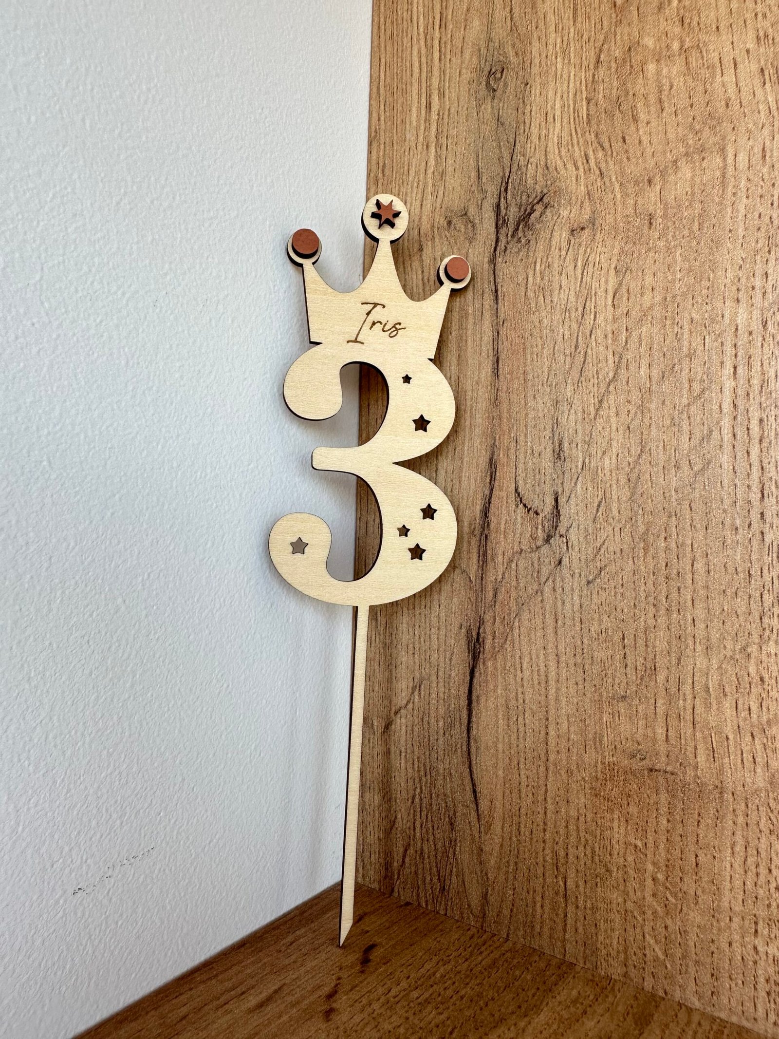 Craquez pour cet original cake topper en bois découpé selon l’âge et personnalisé avec le prénom de l’enfant concerné ou une date.
