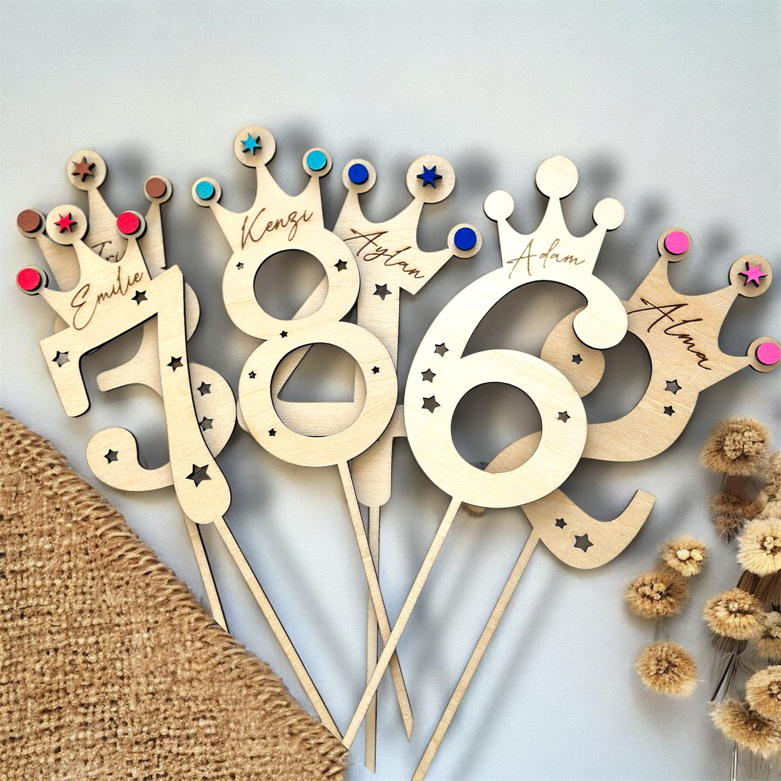 Notre cake topper unique au design de couronne étoilée ajoutera une touche spéciale à vos gâteaux d’anniversaires.